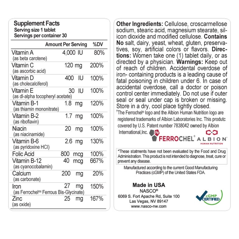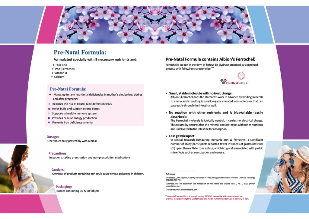 Pre-Natal Formula provides you with 10 vitamin and 3 minerals to support your well-being and promote your baby’s healthy development throughout pregnancy. It offers 800 mcg of the much-needed folic acid and contains Ferrochel® Iron, a premium and patented form of iron known best for its high absorption and ability to not upset stomach or the digestive tract.