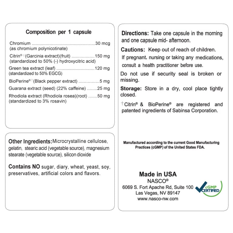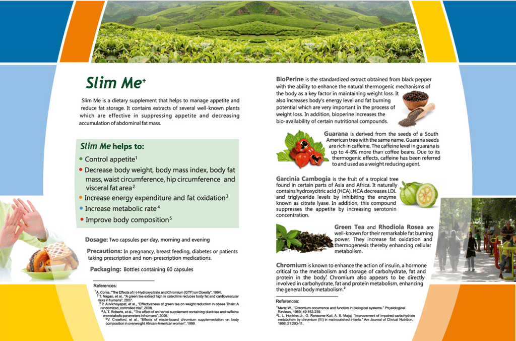 Slim Me contains several well-studied herbal extracts proved to enhance metabolism and support weight management. It contains Chromium Polynicotinate, that supports metabolism of glucose, necessary for energy production and stabilizes blood. Slim Me also contains Guarana Seed extract, which have been referred to as being a stimulant with thermogenic effects.
